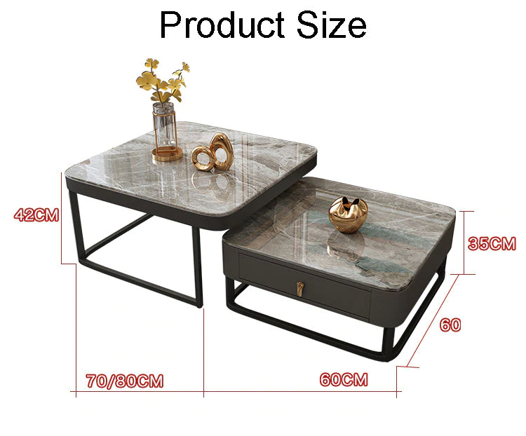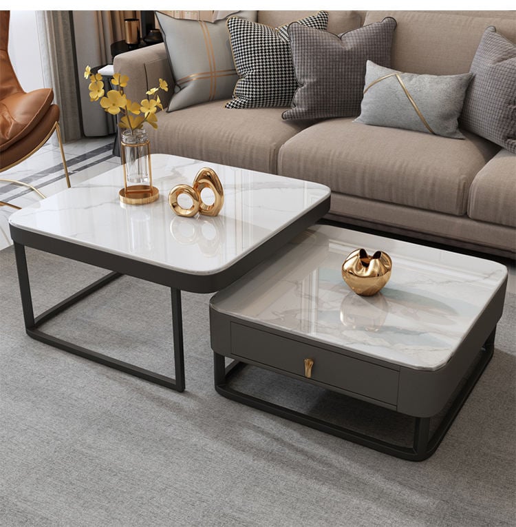A new addition to our designs, high and low spread flexible combinations. Elegant, modern and practical combination of marble slab, solid drawer, quiet cushioning, lacquered body, stainless steel chassis. A coffee table that is an elegant addition to your space. Custom options include body and frame color.