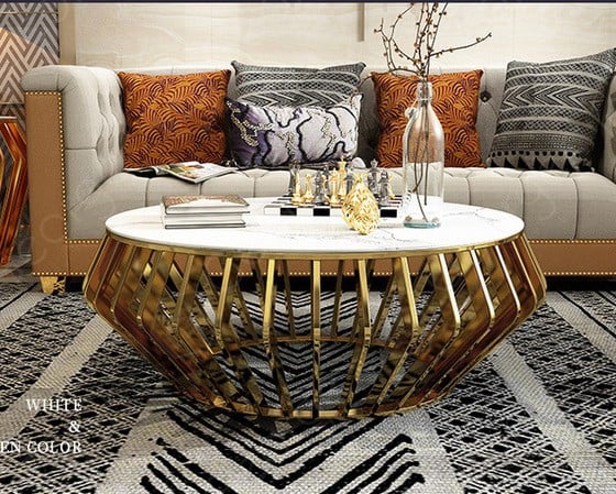 marble top golden steel furniture
